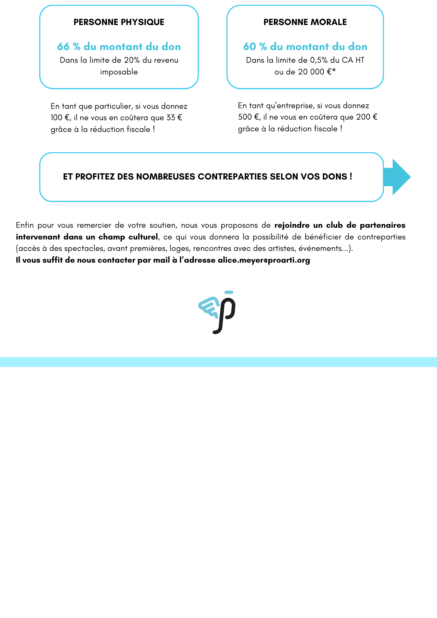 Acteur de la philanthropie, le fonds de dotation Proarti oeuvre depuis 2009 pour la création artistique et culturelle en Europe. En soutenant Proarti, vous participez au développement de ses actions en faveur de la culture. Chaque don compte !