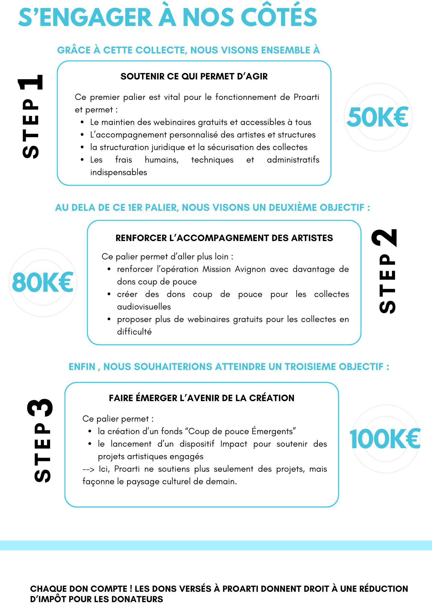Une fois la collecte soutenue terminée et réussie, vous recevrez automatiquement par courrier électronique votre reçu fiscal si vous en avez fait la demande au moment du don. Vous pourrez aussi retrouver votre reçu en ligne sur votre compte Proarti.