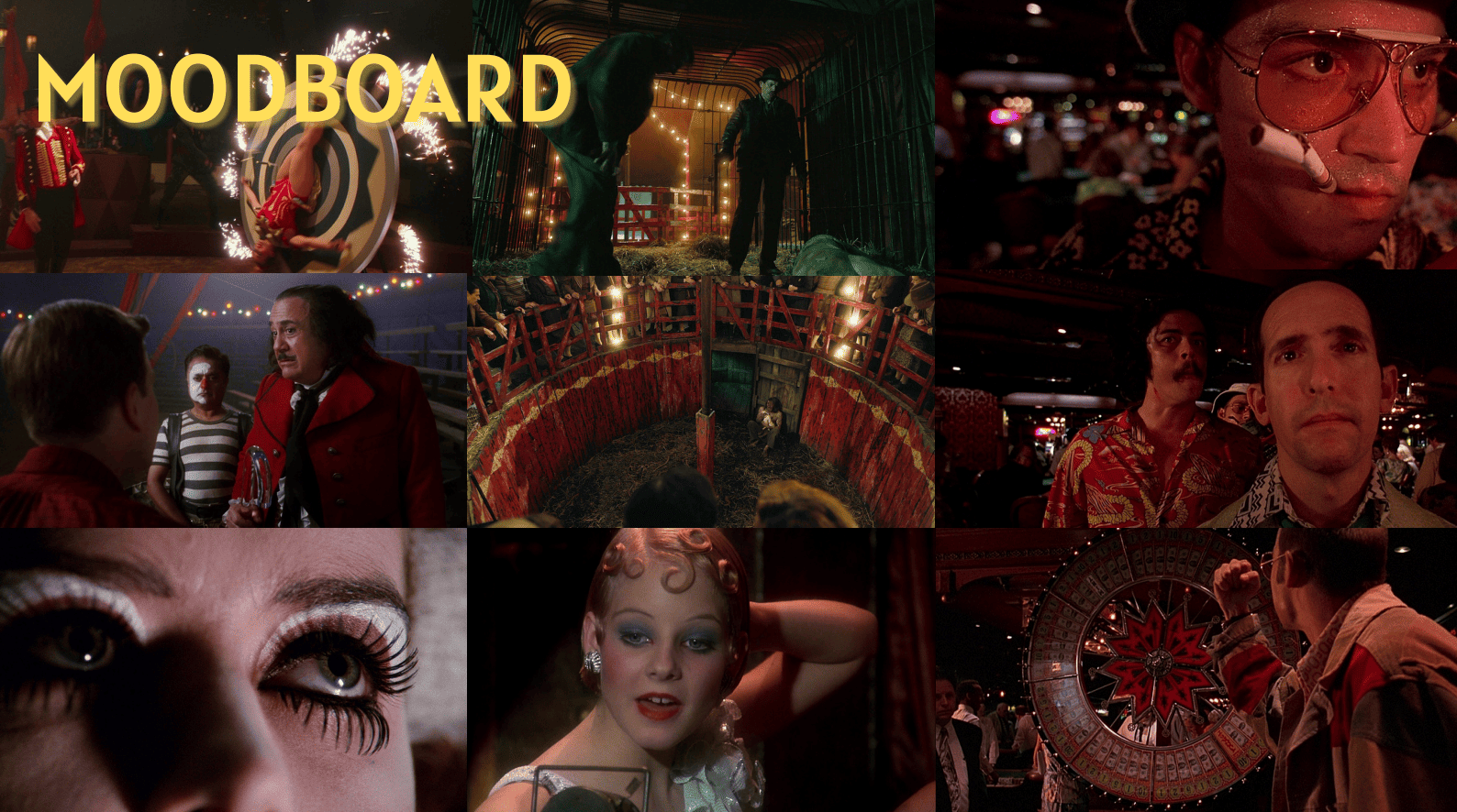 Nos influences : Nightmare Alley (Guillermo del Toro), Fear and Loathing in Las Vegas (Terry Gilliam), Big Fish (Tim Burton).