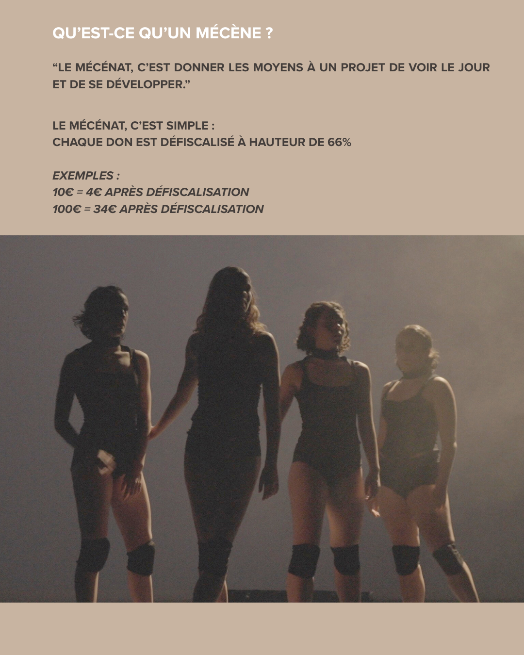 Le nom du donateur inscrit dans le programme du spectacle et/ou projeté en remerciement à la fin de la représentation.