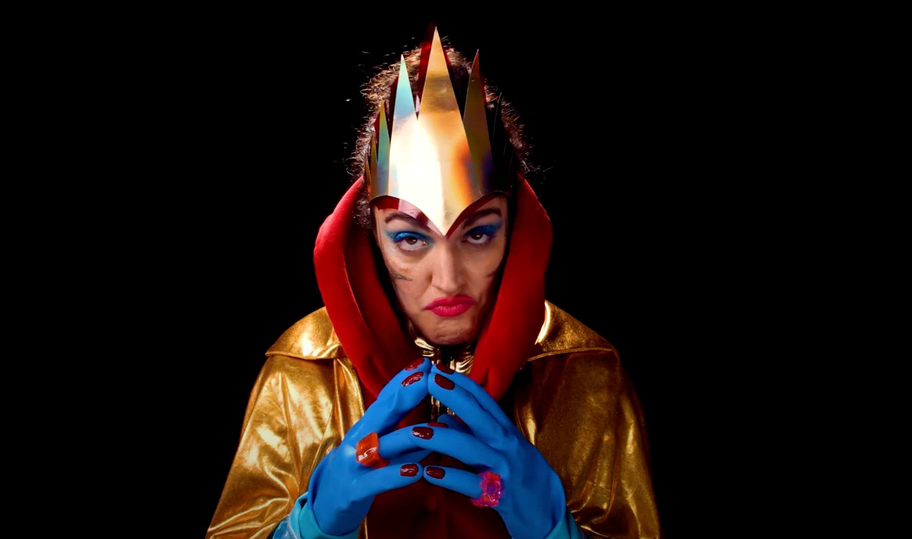 Impératrice Gaya est née sur scène dans « Acid Cyprine ». Au fil des explorations au plateau, a émergé une Impératrice ridicule : dictatrice de l’espace, super-héroïne ratée tout droit échappée d’un film de série B.