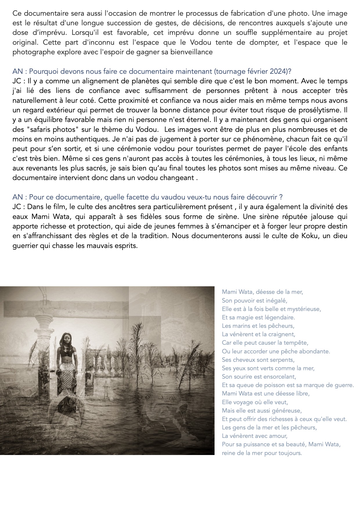 Si la collecte atteint 8000€, cela nous permettrait d'ajouter une séquence en Chine où se tiendra une grande exposition des photographies de Jean-Claude. Cette partie permet d'aborder le vodou hors de ses frontières là où on ne l'attendrait pas !