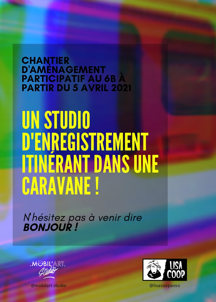 Dès la fin du chantier (prévu pour début juin), nous ferrons une tournée en Île-de-France à la rencontre des différents publics: artistes, publics jeunes lors d'ateliers pédagogiques. Vous pourrez suivre les déplacements du studio mobile directement sur sa page Instagram: https://www.instagram.com/mobilart.studio/ Egalement sur sa chaîne youtube en court de création.