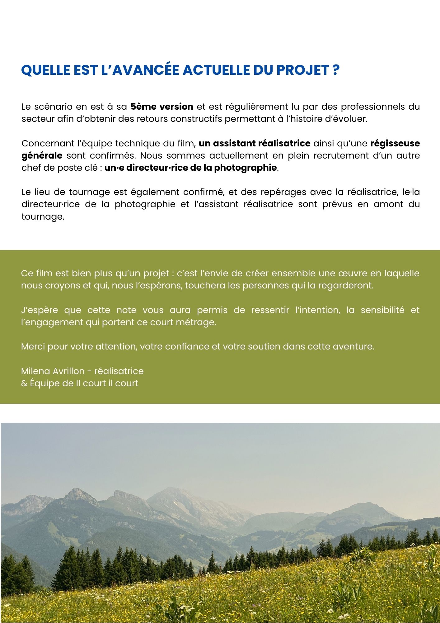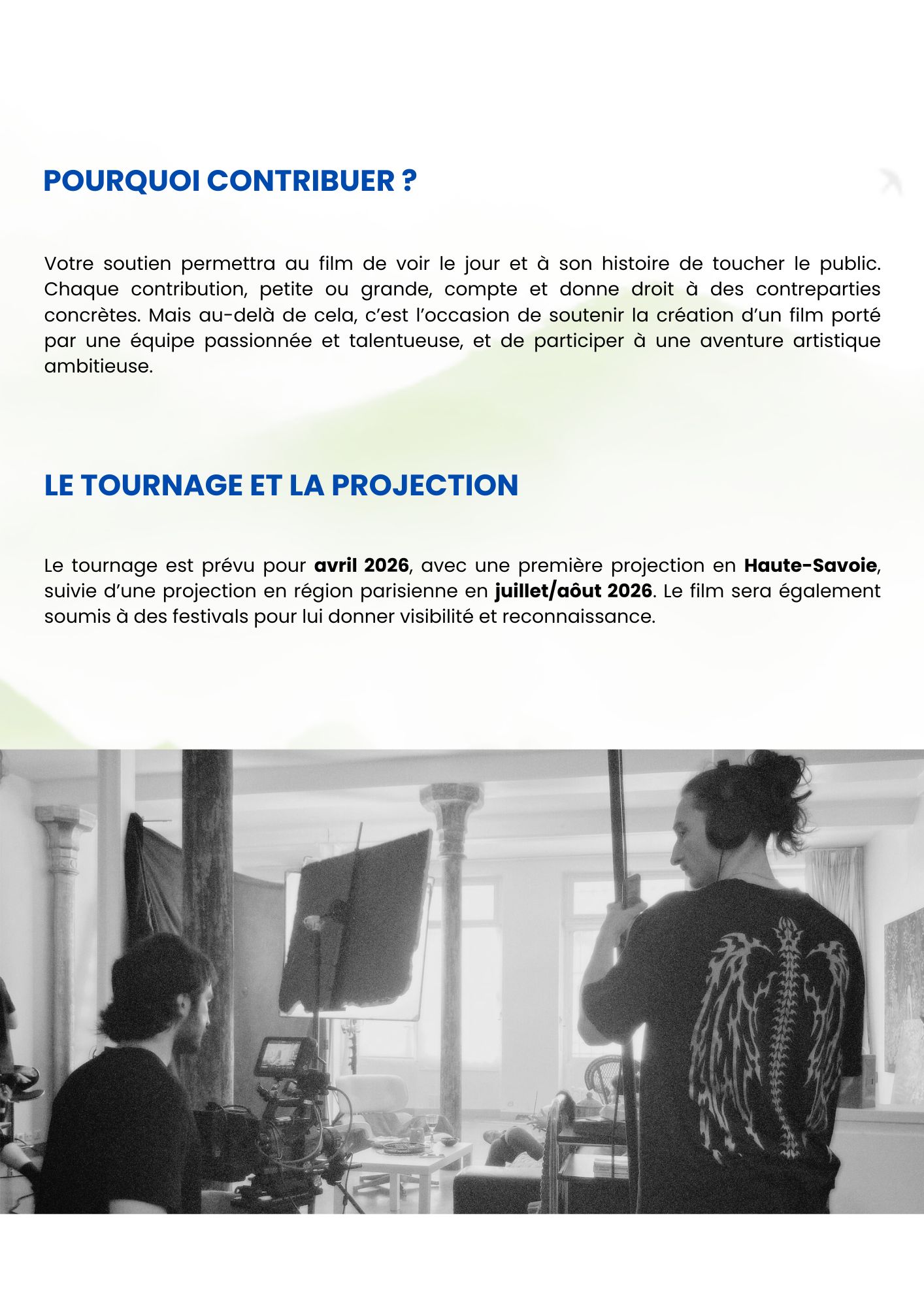 L’argent collecté via ce crowdfunding servira à couvrir les frais de transport de l’équipe, à assurer les repas pendant le tournage, ainsi qu’à loger les personnes venant de l’extérieur de la région. Il nous tient à cœur de créer de bonnes conditions de travail pour favoriser une synergie et une ambiance positive tout au long du projet.