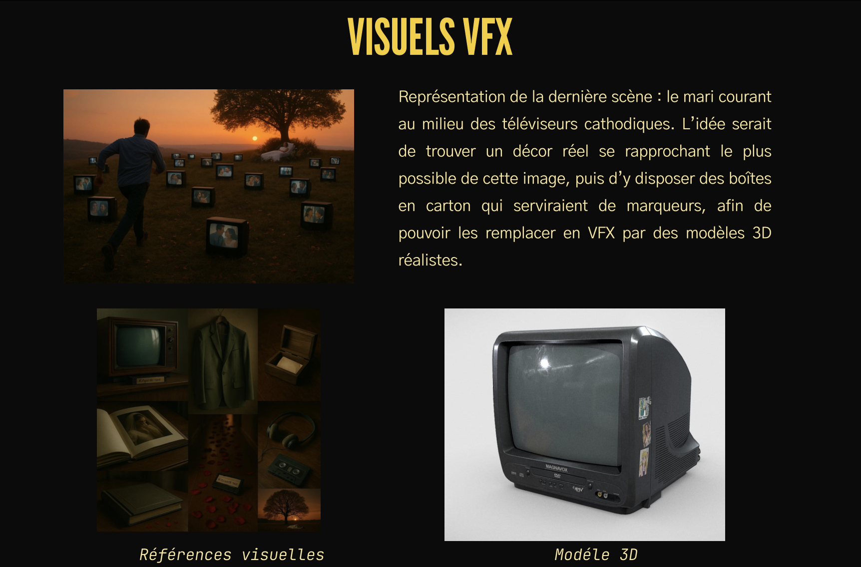 Le rythme est celui de la vie, sans artifice, avec la tension douce mais continue du cheminement vers la vérité. Un raccord discret (porte, rideau, élément sombre) permettra de passer de l’intérieur à l’extérieur sans briser l’illusion du plan unique.