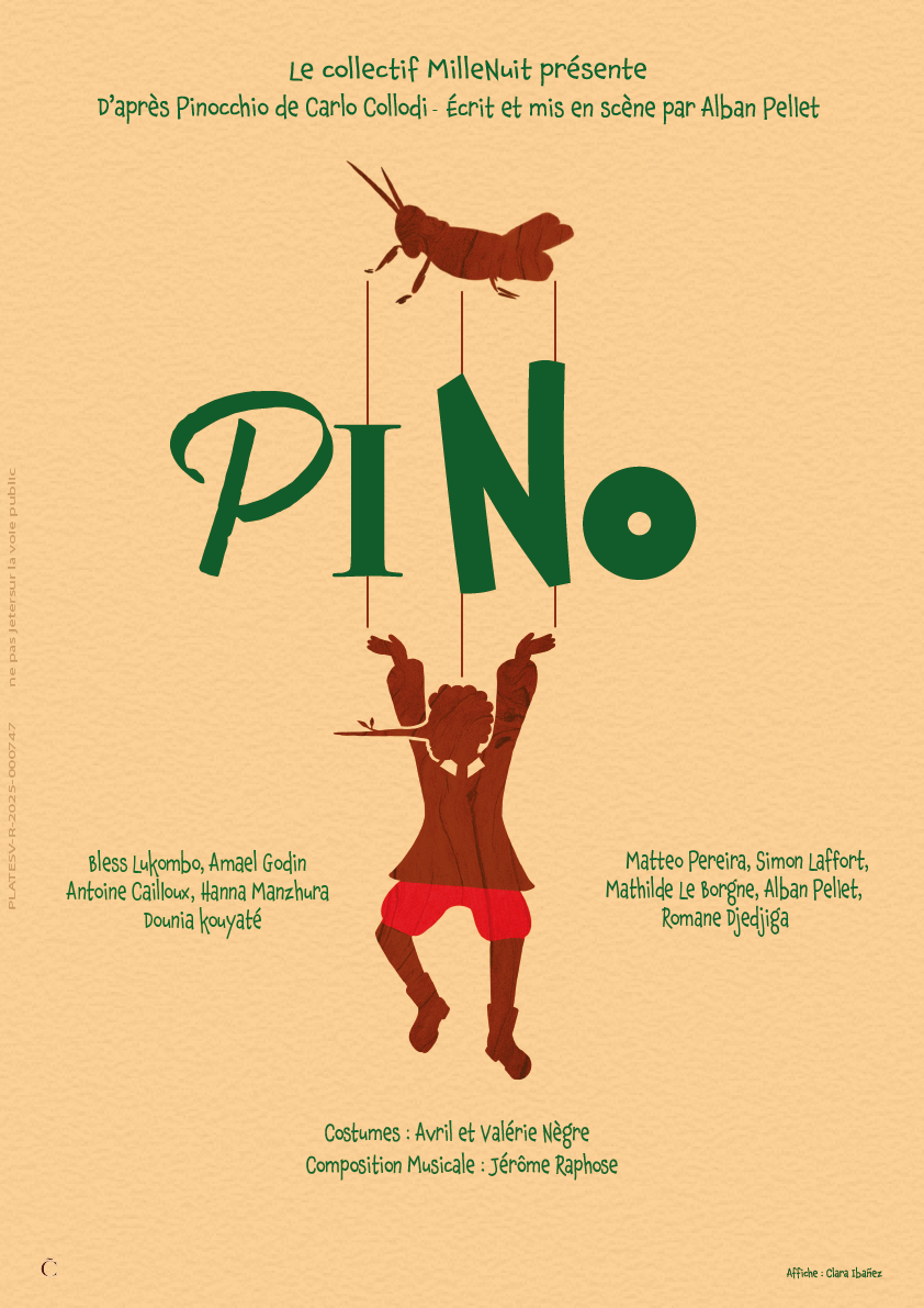Vous recevrez une affiche de Pino dédicacée par tous les comédiens et comédiennes du spectacle, ainsi qu'une invitation pour Pino au Festival d'Avignon 2026.