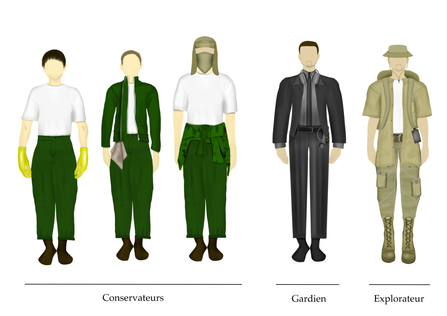 L’histoire que je cherche à développer se déroule dans un univers bien spécifique. Un univers où l’on ne sait plus ce que « plante » veut véritablement dire. Où le végétal n’est qu’un souvenir lointain, nostalgique et faussé. Les seules traces existantes sont conservées dans une sorte de musée, présentant un diorama tout en plastique, entretenu par des conservateurs malhabiles et candides. Le mouvement que je souhaite y développer est démembré, absurde, à l’image de l’univers dans lequel évoluent les interprètes.