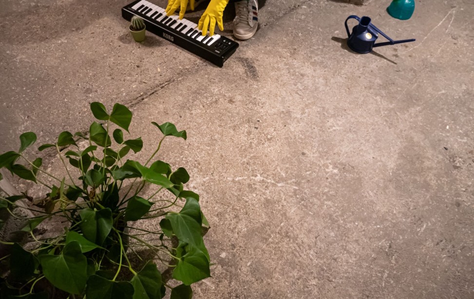 Au milieu de l’immensité, un diorama artificiel majestueux. Par cette scénographie, nous installons l’univers de Plantasia dans des théâtres et sites naturels, comme pour inciter le spectateur à mieux contempler ce qui l’entoure. Avec son mur végétal en kit, sa pelouse à rouleau, la scénographie n’est en fait que la réplique d’une nature paradisiaque, idéalisée. Pour les personnages de notre pièce, cet éden plastique est une réalité. Le public devient ainsi spectateur d’un monde miniature, tantôt dystopique, tantôt utopique, entrant en dissonance avec notre réalité pour en souligner les défauts.