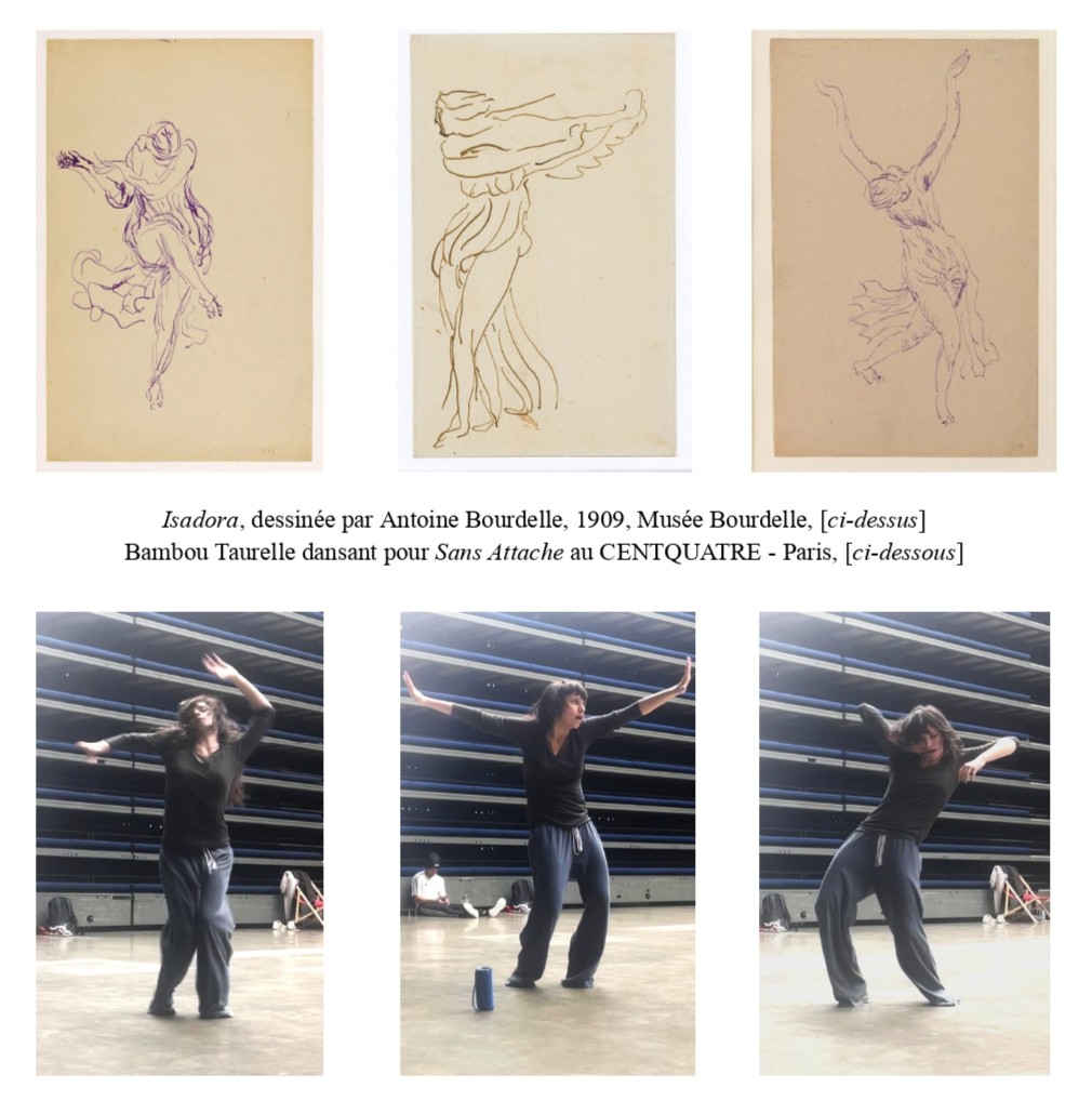 Sans Attache se construit autour mouvement. Aussi bien dans les moments de fougue des amoureux que dans les séquences centrées autour de la danse. Le corps de Léo s’ancre pleinement dans la danse moderne comme l’entend Isadora Duncan dès le début du XXème siècle. Le corps n’est plus étriqué dans un corset mais bien moteur d’expression et de libération. Cela rejoint aussi les créations plus récentes de Pina Bausch comme par exemple avec Vollmond (2006), mettant l’emphase sur une gestuelle aussi sensuelle que saccadée. Quand Léo danse, elle met toute sa créativité, mais aussi son étrangeté, à contribution pour trouver ses pas sur la piste. Ainsi la voit-on souvent se désarticuler quand il s’agit de danser. Ses épaules et hanches sont conductrices du mouvement, comme on peut le retrouver dans le spectacle de Gisèle Vienne, Crowd (2017), qui nous plonge dans les intenses vibrations d’une fête sans relâche.