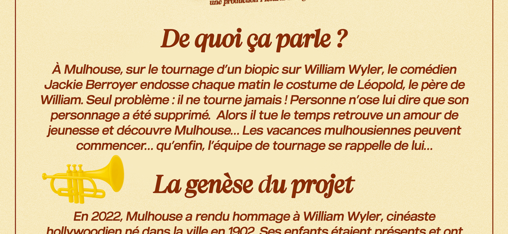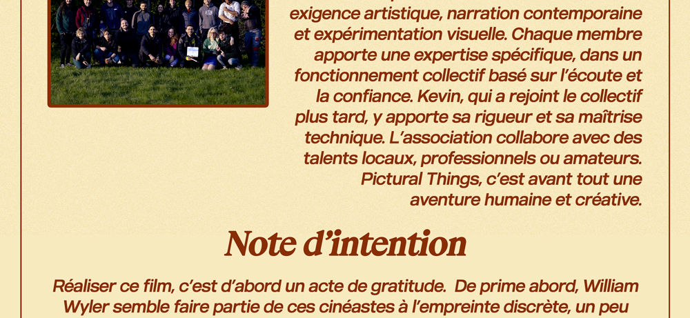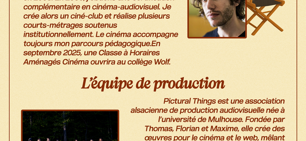 Le tournage de Vacances Mulhousiennes est prévu pour fin octobre. Ensuite, place à quelques mois de post-production… pour une sortie prévue au deuxième trimestre 2026 ! Bien entendu, chaque donateur sera tenu informé, tout comme sur les réseaux sociaux de Pictural Things.