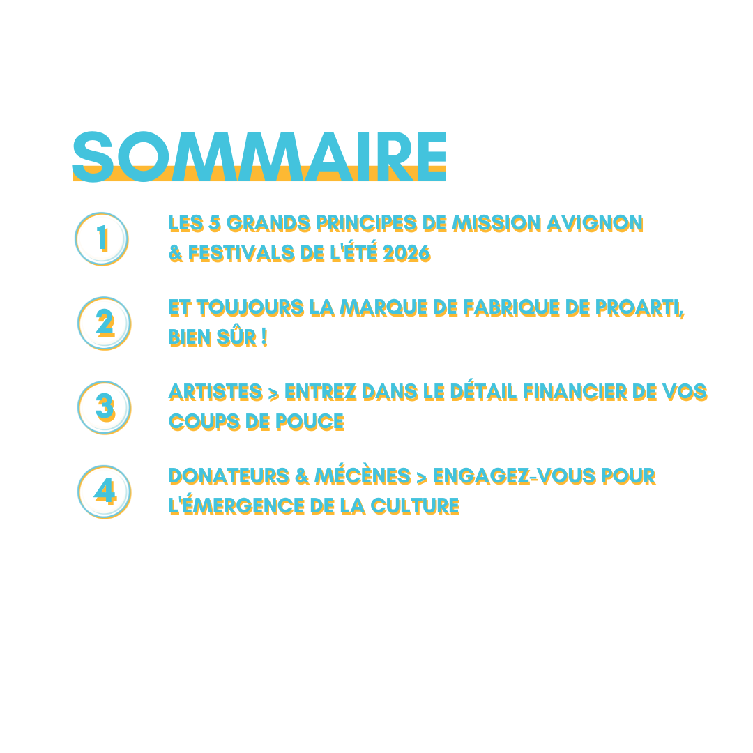 Les artistes qui lancent leur collecte sur proarti.fr pour présenter leur spectacle à Avignon bénéficieront automatiquement des dons coup pouce alloué à chaque projet* :